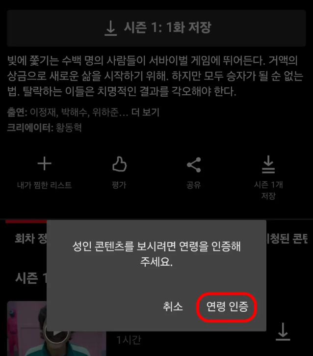 이는 만 19세 이상(한국 기준) 성인이 자신의 계정에서 특정 콘텐츠를 시청할 때 요구됩니다.