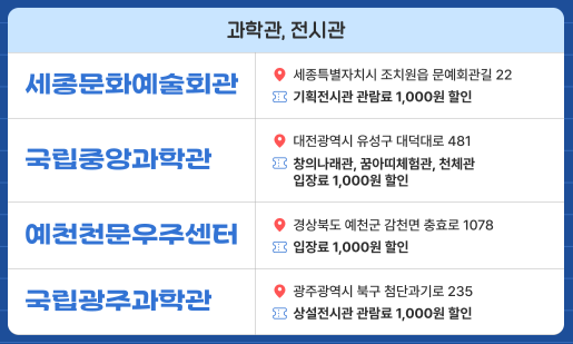 ◾ 문화재 관람 할인 : 국립중앙박물관 등에서 기획전시 관람 시 10% 할인 혜택을 받을 수 있습니다.