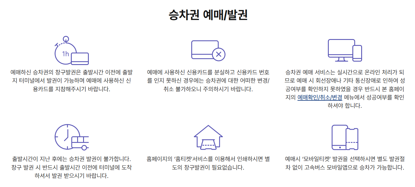 ◾ 터미널 예매: 터미널에 가서 출발지와 도착지를 확인하고, 창구에서 예매할 수 있습니다.