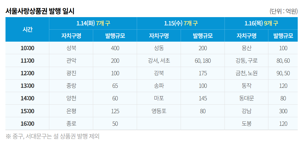 ✅ 주의: 중구와 서대문구는 이번 설 상품권 발행에서 제외됩니다.