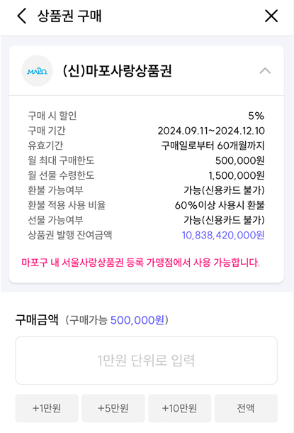 4. 서울사랑상품권 구매: 앱 내에서 서울사랑상품권을 구매합니다.