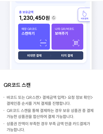 신용카드나 체크카드를 사용하지 않고도 간편하게 결제가 가능하며, 별도의 수수료 없이 상점에서 직접 사용할 수 있습니다.